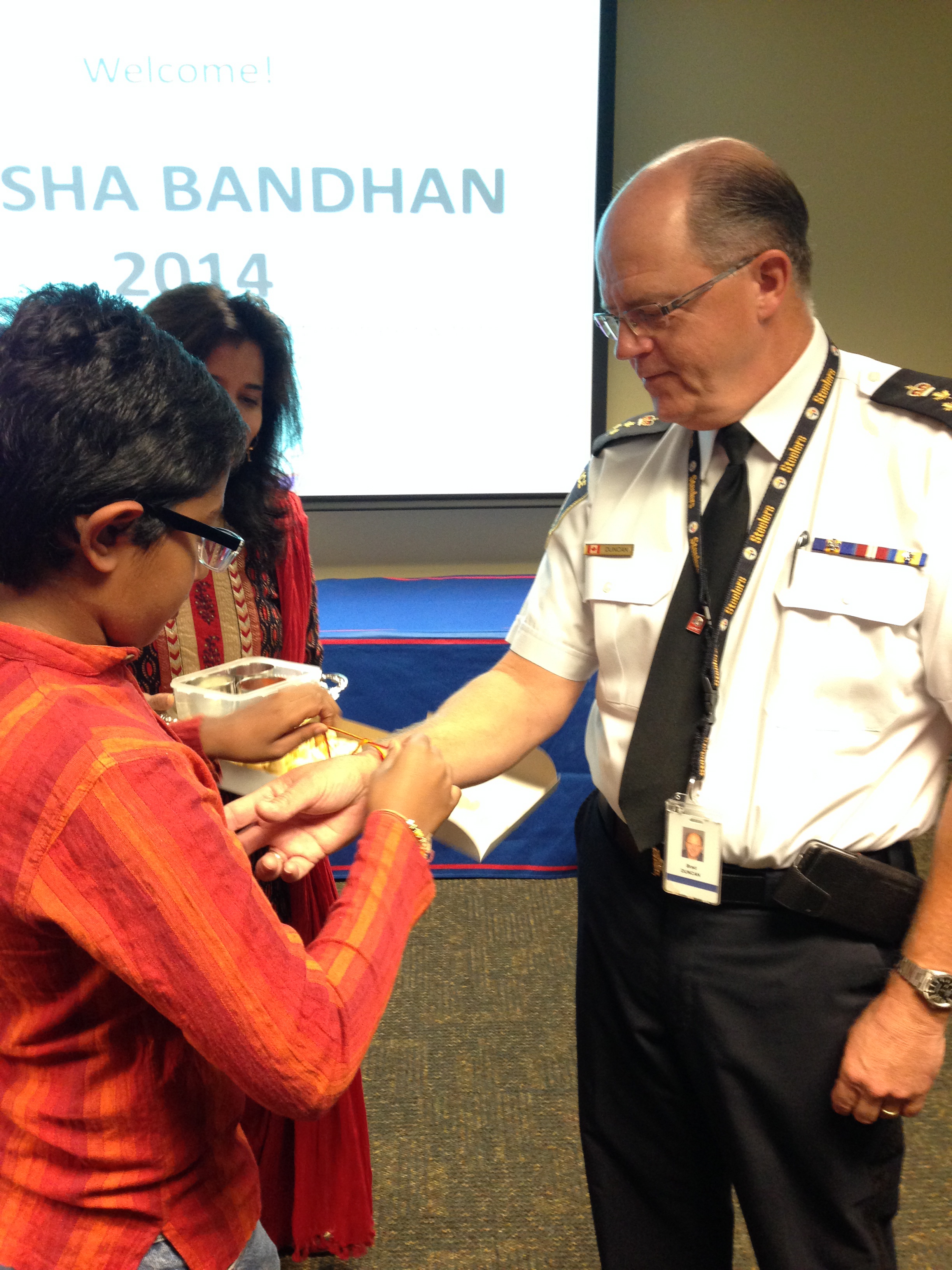 Children tied Rakhis to Police Chief Duncan, Deputy Chief Shea and Officers at the HQ, on the occasion of Rakshabandhan, this year.